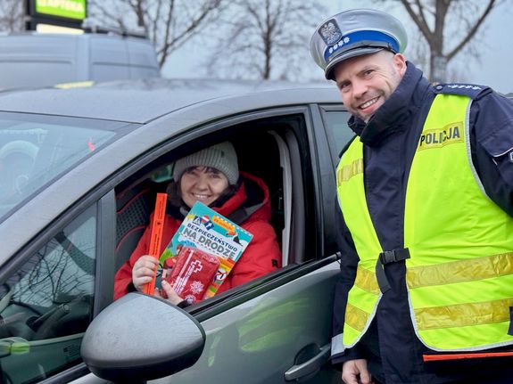 Dla kierowców apteczki, a dla dzieci książeczki. Mikołajkowa akcja słupskiej drogówki