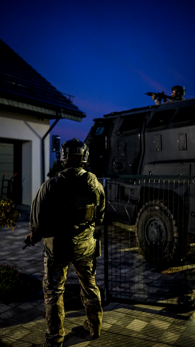 Skoordynowana akcja policjantów z Komendy Wojewódzkiej Policji w Gdańsku oraz żołnierzy Oddziału Żandarmerii Wojskowej w Elblągu, przeprowadzona została w związku ze śledztwem powierzonym policjantom z Wydziału Dochodzeniowo-Śledczego Komendy Wojewódzkiej Policji w Gdańsku. Funkcjonariusze wspólnie z żandarmami na podstawie postanowień prokuratora Prokuratury Okręgowej w Gdańsku zatrzymali 3 podejrzanych powiązanych ze środowiskiem pseudokibiców. W czynnościach operacyjnych, zatrzymaniach i doprowadzeniach do prokuratury brali również udział policjanci z Wydziału dw. z Przestępczością Pseudokibiców gdańskiej komendy wojewódzkiej. Podejrzanym grozi kara nawet do 20 lat pozbawienia wolności.