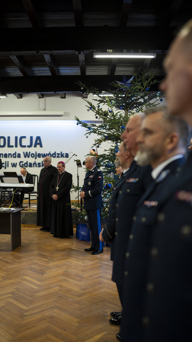 W Komendzie Wojewódzkiej Policji w Gdańsku odbyło się dzisiaj uroczyste spotkanie opłatkowe kadry kierowniczej garnizonu pomorskiego. W atmosferę tych wyjątkowych bożonarodzeniowych świąt wprowadził zebranych Arcybiskup Metropolita Gdański, Przewodniczący Episkopatu Polski – Jego Ekscelencja Tadeusz Wojda. Następnie zebrani podzielili się opłatkiem.