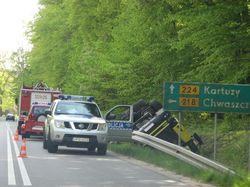 Wczoraj o godz.: 14.40 na ul. Marynarki Wojennej 50-letni kierujący ciężarową kanią z naczepą jadąc z kierunku Nowego Dworu Wejherowskiego w kierunku skrzyżowania z drogą na Szemud prawdopodobnie w wyniku awarii silnika utracił stateczność hamulców, przejechał skrzyżowanie wjeżdżając do rowu, w wyniku czego ciężarówka przewróciła się kołami do góry. Kierowcy nic się nie stało. Na miejscu natychmiast zjawili się policjanci, następnie straż pożarna i pogotowie.