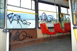 Wczoraj około godz.: 05.00 rano policjanci ze Stogów otrzymali informację od pracownika zakładu komunikacji miejskiej, że na ul. Siennickiej ktoś pomalował sprejem wagon tramwaju. Funkcjonariusze pojechali w miejsce gdzie stał uszkodzony pojazd. Okazało się, że wewnątrz ostatniego wagonu, na trzech szybach wymalowane są czarne napisy oraz grafika. Straty oszacowano na 400 zł.