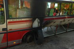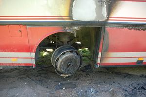 Opona wystrzeliła podczas postoju raniąc dzieci wysiadające z autokaru.