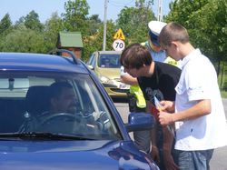 Kierowcy biorący udział w akcji byli mile zaskoczeni i z chęcią czytali wręczane im przez młodzież ulotki.