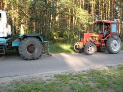 Wczoraj po godz.: 19.00 w Rychnowach koło Człuchowa policjanci drogówki zatrzymali do kontroli drogowej trzy ciągniki rolnicze. Pojazdy połączone były ze sobą za pomocą holu. Pierwszy ciągnik służył do holowania drugiego ciągnika, który był uszkodzony, trzeci natomiast pomagał kierować drugim ciągnikiem.