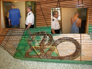 Wczoraj po godz. 22.00 patrol lęborskiej policji zatrzymał po krótkim pościgu dwóch pijanych 32-letnich lęborczan, którzy chwilę wcześniej na jednej z ulic zdewastowali samochody, wyrywając z nich wycieraczki, lusterka i niszcząc powłoki lakiernicze. Łączna wartość strat to ponad 2 tys. zł. Jeden z zatrzymanych był w towarzystwie węża. Mężczyźni spędzili noc w policyjnym areszcie, a gad trafił do klatki dostarczonej przez pracowników Animals.