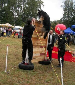 Największe jednak zainteresowania wzbudziła konkurencja potęga skoku”, gdzie psy policyjne pokonywały przeszkodę. Najwyższy skok na wysokość 209 cm wykonały aż trzy psy, konieczna więc była dogrywka.