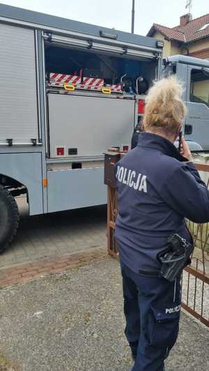Policjanci pracowali na miejscu zdarzenia, gdzie znaleziony został materiał wybuchowy