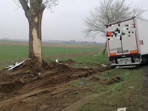 Zasnął za kierownicą i wjechał tirem do rowu. Policjanci apelują o ostrożność i rozwagę na drodze
