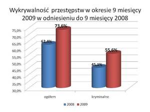 Przyjęta strategia daje wyraźne rezultaty, co pokazują dane statystyczne. Dynamika przestępstw systematycznie spada, a ich wykrywalność nadal rośnie. Tylko w ciągu pierwszych 9 miesięcy bieżącego roku odnotowano ponad 1,7 tysiąca przestępstw mniej niż w analogicznym okresie poprzedniego roku. Jednocześnie wykryto 17,5 tysiąca przestępstw więcej niż w zeszłym roku. Dzięki profesjonalnym działaniom policjantów całego województwa wykrywalność wszystkich przestępstw znalazła się na poziomie 73,6%. Oznacza to wzrost o 11%. Wzrosty na podobnym poziomie odnotowano również w zakresie przestępczości kryminalnej.