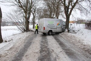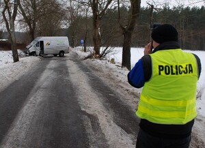 Tuż po godzinie 11-tej kierujący mercedesem mężczyzna na oblodzonej jezdni stracił panowanie nad pojazdem. Dostawczy mercedes wpadł w poślizg i zjechał na prawe pobocze, gdzie przodem uderzył w drzewo.