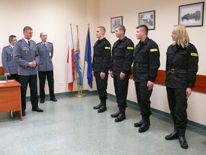 Ślubowanie przyjął p.o. Komendant Miejski Policji w Gdyni - mł. insp. Robert Leksycki. Pięciu policjantów, w tym jedna kobieta, po złożeniu ślubowania odebrało akty nominacyjne na pierwszy stopień policyjny.