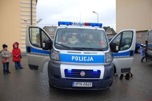 Największą frajdą okazały się radiowozy. Milusińscy w mgnieniu oka opanowały dwa duże policyjne furgony. Za kierownicę chętnie siadali zarówno chłopcy jak i dziewczynki.