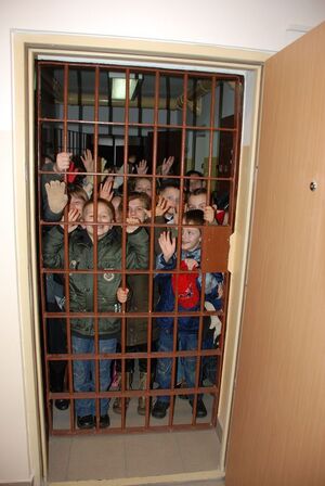 Następnie przyszła kolej na poznanie pomieszczenia, do którego trafiają przestępcy. Policyjny areszt okazał się miejscem, w którym maluchy czuły się bardzo swobodnie.