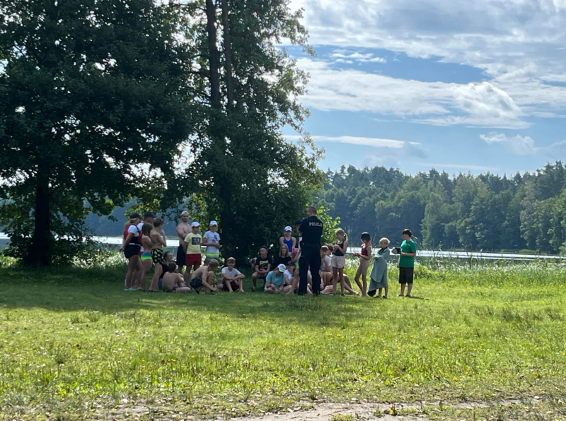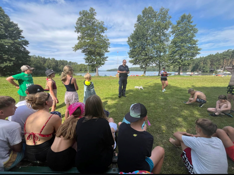Dzielnicowi spotkali się z uczestnikami obozu żeglarskiego w miejscowości Czernica w ramach ogólnopolskiej akcji informacyjno-edukacyjnej pn. „Kręci mnie bezpieczeństwo nad wodą” oraz „Bezpieczne wakacje”. Funkcjonariusze rozmawiali z dziećmi o bezpieczeństwie podczas wypoczynku nad wodą i o bezpiecznym zachowaniu na drodze.