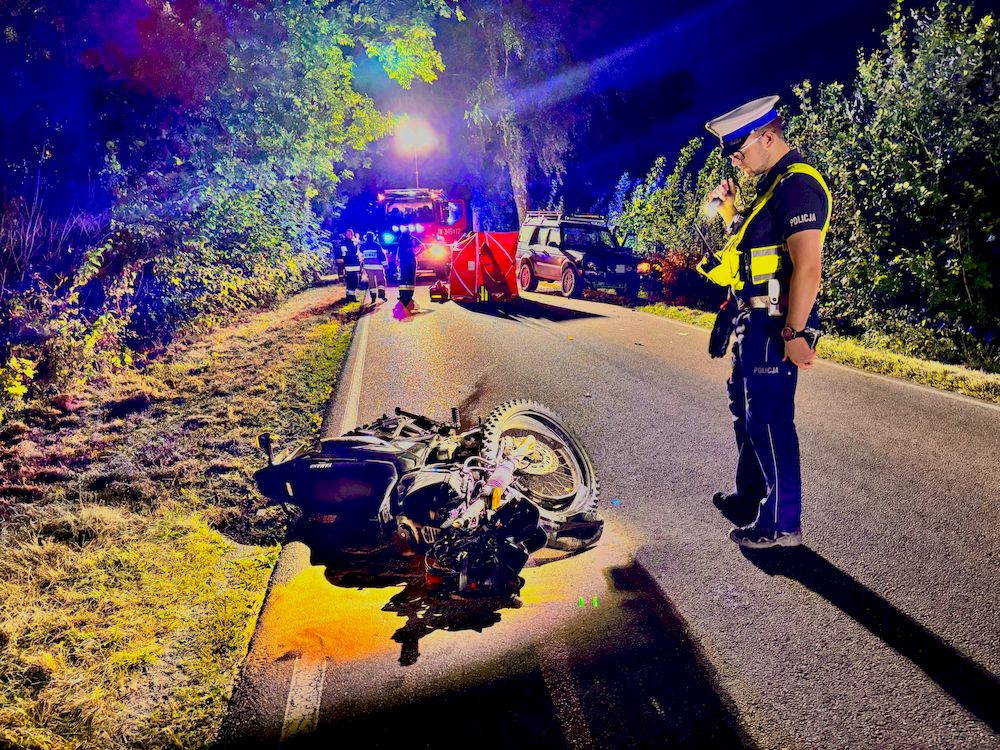 Policjanci pracowali na miejsku śmiertelnego wypadku motocyklisty w Gminie Dębnica Kaszubska.
