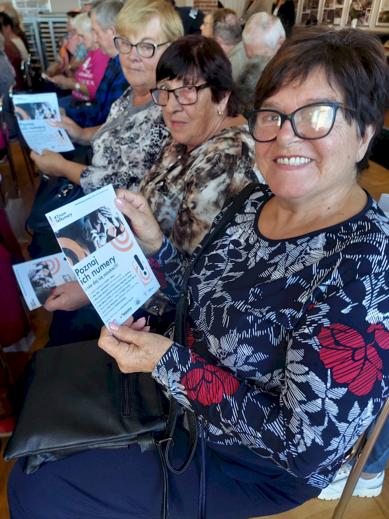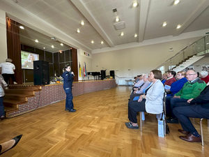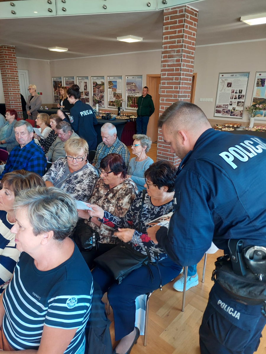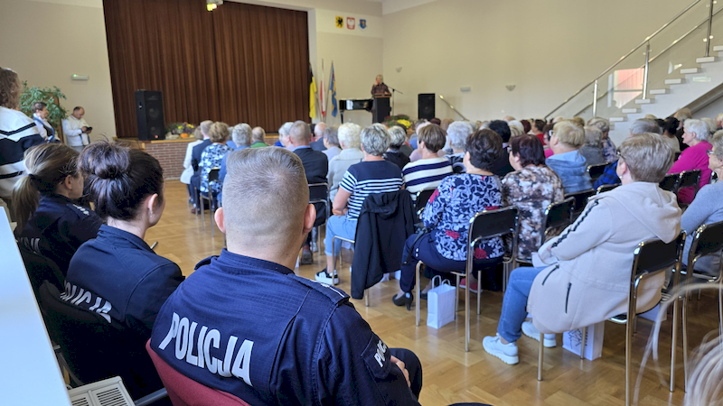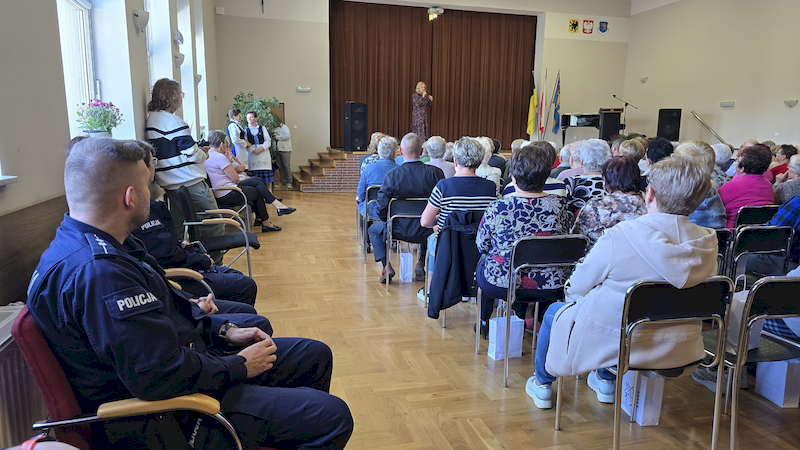 Ważnym elementem spotkania były porady dotyczące zapobiegania oszustwom. Seniorzy dowiedzieli się, jakie kroki należy podjąć w przypadku podejrzeń o próbę oszustwa, a także otrzymali ulotki zawierające kluczowe informacje, w tym ważne numery telefonów oraz instrukcje dotyczące postępowania w sytuacjach zagrożenia.