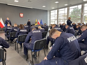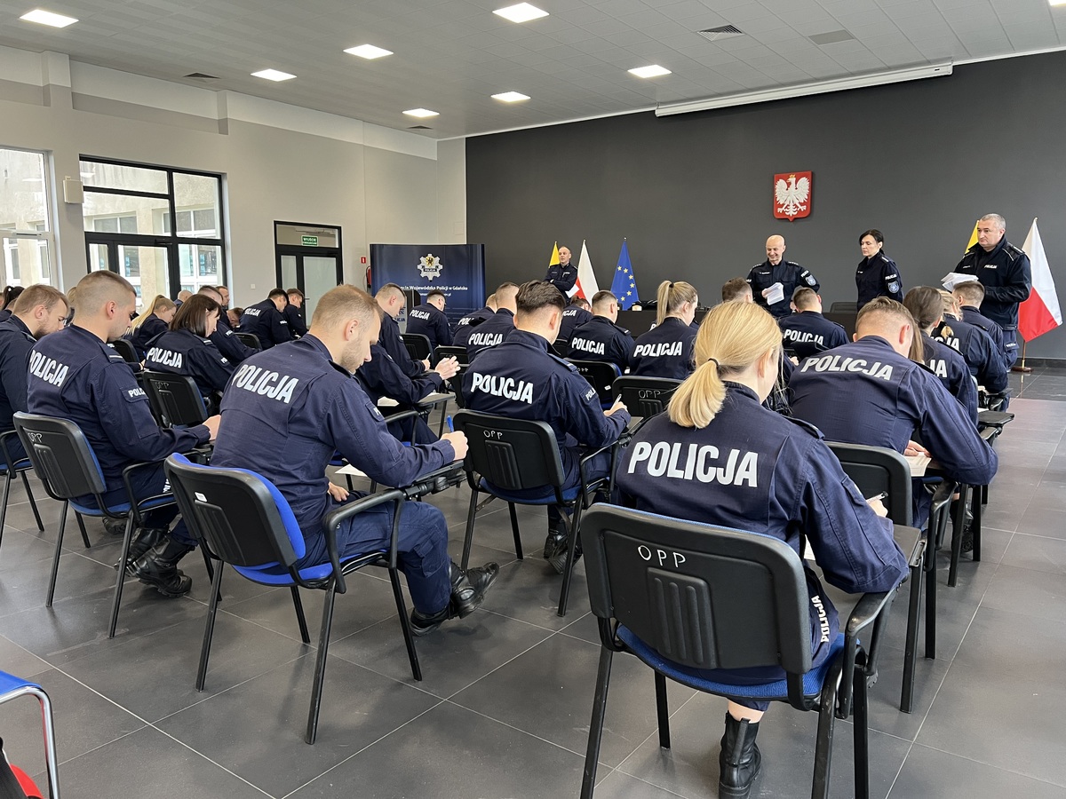 Funkcjonariusze garnizonu pomorskiego po trzech tygodniach edukacji podeszli do ostatniego etapu kursu - testu wiedzy. Zadaniem uczestników było rozwiązanie 40 pytań zamkniętych, na co zostało przeznaczone 50 minut.