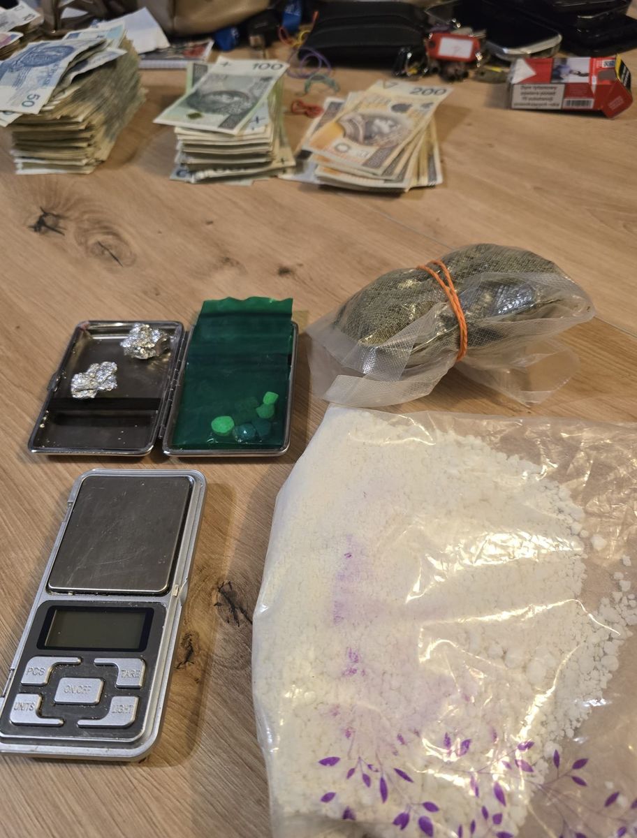 W trakcie pracy nad sprawą kryminalni z komendy miejskiej zdobyli informację, że w jednym z mieszkań we Wrzeszczu przebywają osoby, która posiadają środki odurzające. We wtorek około godziny 17:30 policjanci pojechali pod wytypowany adres i najpierw wylegitymowali 18-latkę, która w kieszeni spodni miała woreczek strunowy z białym proszkiem. Następnie kryminalni wylegitymowali 15-latka, który wszedł do mieszkania. Okazało się, że nastolatek w listopadzie 2024 roku uciekł z domu, a policjanci z komisariatu przy ul. Platynowej prowadzą jego poszukiwania opiekuńcze. W trakcie przeszukania mieszkania, które zajmował nastolatek i 18-latka kryminalni znaleźli i zabezpieczyli liczne zawiniątka z suszem roślinnym oraz białym proszkiem, tabletki, butelkę z płynną substancją oraz gotówkę w kwicie ponad 12 tysięcy złotych. Materiał ten przekazano do analizy biegłemu, który we wstępnej opinii określił, że policjanci zabezpieczyli znaczną ilość narkotyków w postaci prawie 1640 porcji klefedronu i haszyszu, 34 tabletki psychotropowe oraz 83 ml płynnej substancji, z którego można by sporządzić 43 porcje środka psychotropowego. 15-latek i 18-latka zostali zatrzymani. Nieletni trafił do Policyjnej Izby Dziecka, natomiast młoda kobieta do policyjnego aresztu. Następnego dnia 18-latek usłyszał zarzut za posiadanie 9 porcji klefedornu, natomiast 15-latek został doprowadzony do sądu rodzinnego, gdzie został przesłuchany i odpowie za posiadanie znacznej ilości narkotyków. Sąd rodzinny podjął decyzję o umieszczeniu 15-latka w Młodzieżowym Ośrodku Wychowawczym.