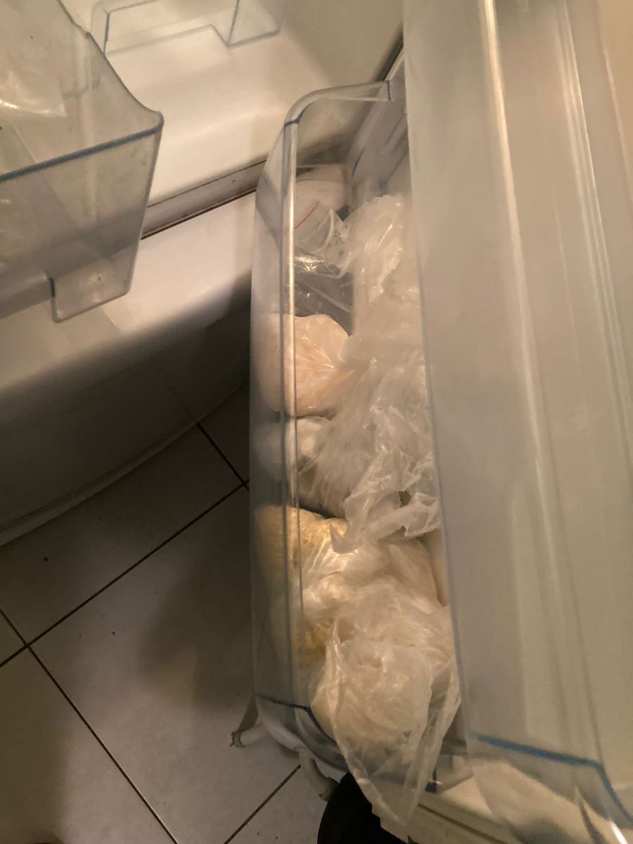 Kryminalni z gdańskiej komendy miejskiej, którzy zajmują się zwalczaniem przestępczości narkotykowej, zdobyli informację o mieszkańcu Gdańska, który miał przechowywać w mieszkaniu narkotyki. Policjanci zajęli się tą sprawą i dzięki bardzo dobremu rozpoznaniu zdobyli kolejne cenne informacje na temat mężczyzny. Funkcjonariusze podczas swojej pracy ustalili, gdzie mężczyzna mieszka oraz jakim jeździ samochodem. Gdy kryminalni mieli już wszystkie potrzebne informacje i wiedzieli, że w wynajmowanym przez 28-latka mieszkaniu znajdą zabronione substancje, pojechali go zatrzymać. W miniony czwartek przed godz. 20.00 policjanci zauważyli na parkingu samochód mężczyzny, gdy weszli na klatkę schodową, spotkali tam 28-latka, do którego przyjechali. Kryminalni przedstawili się i podali powód wizyty. Mężczyzna był całkowicie zaskoczony, a obecność kilku policjantów skutecznie ostudziła jego chęć ucieczki. Funkcjonariusze weszli z mężczyzną do mieszkania i podczas kontroli znaleźli i zabezpieczyli prawie 500 gramów amfetaminy, ponad 300 marihuany, 100 klefedronu i kilka porcji kokainy, łącznie prawie 1 kg narkotyków, które mężczyzna ukrywał w lodówce. Całość zabezpieczonych zakazanych substancji zostało przekazane do badań biegłemu sądowemu. Zatrzymany 28-latek został doprowadzony do prokuratora, gdzie usłyszał zarzut posiadania znacznej ilości narkotyków, ponieważ jak ustalił biegły, z dostarczonego materiału dowodowego można przygotować prawie 1800 porcji narkotyku.