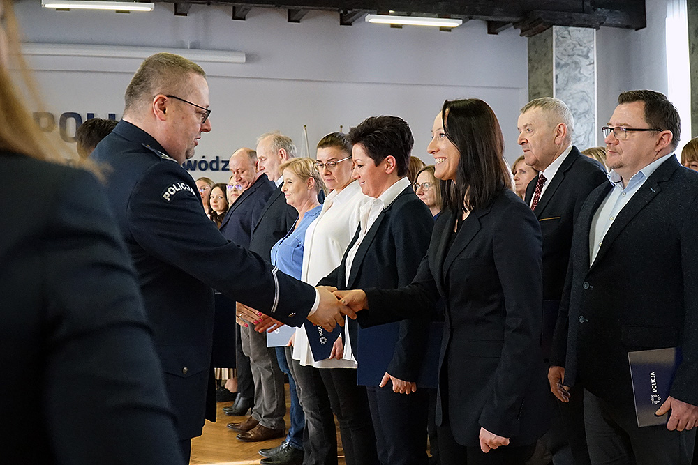 Następnie wręczył kilkudziesięciu pracownikom Policji pamiątkowe dyplomy. To wyróżnienie dla tych, którzy wzorowo wykonują swoje obowiązki, ponadprzeciętnie angażują się w pracę, przejawiają własną inicjatywę i systematycznie doskonalą swoje kwalifikacje zawodowe.
