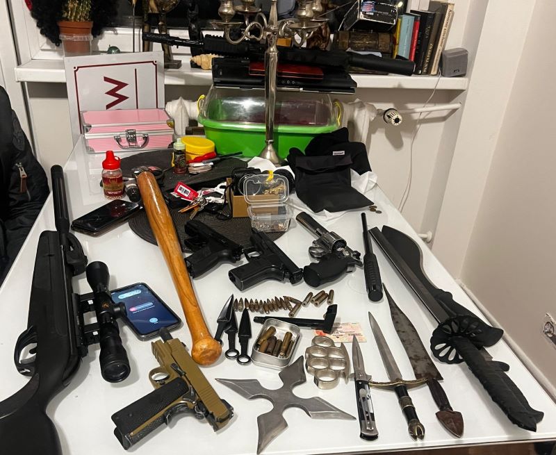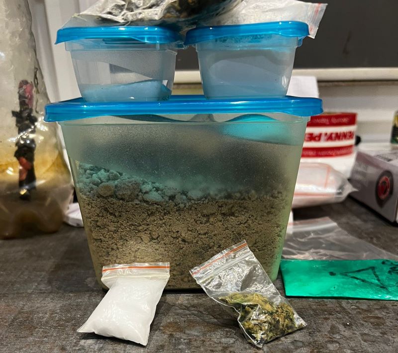 Kryminalni z Chyloni ustalili, że jeden z mieszkańców Gdyni może w swoim miejscu zamieszkania posiadać narkotyki. Funkcjonariusze postanowili to sprawdzić i pojechali pod wskazany adres. Kiedy tam dotarli zauważyli, że z klatki schodowej wychodzi podejrzewany przez nich mężczyzna. Policjanci wylegitymowali 24-latka i zapytali, czy jest w posiadaniu środków odurzających. Mężczyzna przyznał się funkcjonariuszom, że w domu może mieć śladowe ilości marihuany. W związku z powyższym kryminalni wraz z 24-latkiem poszli do jego mieszkania. Na miejscu było wyraźnie czuć zapach marihuany, a na stoliku kawowym w salonie policjanci zauważyli woreczek z suszem roślinnym. Kryminalni przeszukali jego mieszkanie, dodatkowo znaleźli w nim i zabezpieczyli około 10 porcji marihuany, 13 porcji amfetaminy oraz 1511 porcji klefedronu. Ponadto policjanci podczas sprawdzania pomieszczeń znaleźli przedmioty przypominające broń palną, amunicję, kastet, maczetę, pałkę bejsbolową oraz miecz samurajski. Na miejsce przyjechał technik kryminalistyki, który zabezpieczył ślady biologiczne. W systemach policyjnych mężczyzna widniał jako osoba notowana za znieważenie i naruszenie nietykalności funkcjonariusza, zniszczenie rzeczy, przywłaszczenie rzeczy znalezionej, niestosowanie się do orzeczonych środków karnych, kradzież, kradzież z włamaniem, prowadzenie pojazdu w stanie nietrzeźwości, niezatrzymanie się do kontroli oraz za posiadanie narkotyków.