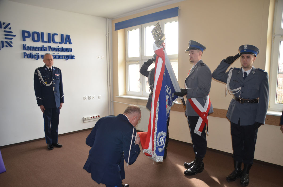 Mł. insp. Radosław Kałaska już oficjalnie na stanowisku Komendanta Powiatowego Policji w Kościerzynie. Dziś w świetlicy budynku kościerskiej komendy odbyło się uroczyste wprowadzenie nowego szefa jednostki. Wprowadzenia dokonał Komendant Wojewódzki Policji w Gdańsku insp. Bogusław Ziemba w obecności władz samorządowych, zaproszonych gości, policjantów i pracowników cywilnych.