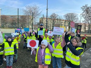 Funkcjonariuszki wspólnie z uczniami Szkoły Podstawowej nr 33 w Gdyni wyruszyły na ulice dzielnicy, aby w praktyczny sposób przypomnieć im zasady bezpiecznego poruszania się po drogach. W trakcie wydarzenia policjantki pokazywały najmłodszym, jak prawidłowo przechodzić przez przejście dla pieszych, na co zwracać uwagę w pobliżu jezdni oraz tłumaczyły, dlaczego tak ważne jest stosowanie elementów odblaskowych. Dzieci aktywnie uczestniczyły w wydarzeniu, niosąc własnoręcznie przygotowane plakaty z hasłami promującymi bezpieczne zachowania na drodze. Kolorowy przemarsz przyciągnął uwagę mieszkańców i kierowców, którzy z zainteresowaniem obserwowali tę wyjątkową lekcję bezpieczeństwa w plenerze.