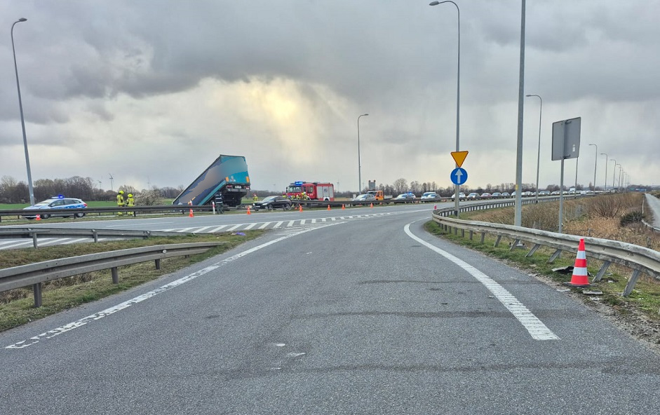 W sobotę 5 kwietnia policjanci z pruszczańskiej drogówki pracowali na miejscu wypadku drogowego na drodze S7. Mundurowi wstępnie ustalili, że 55-letni kierujący pojazdem ciężarowym z naczepą wyjeżdżając z terenu MOP Koszwały w kierunku Gdyni, uderzył w bariery energochłonne rozdzielające jezdnie, rozerwał je, przejechał przez oba pasy ruchu w kierunku Warszawy i następnie wjechał do przydrożnego rowu, uszkadzając bariery krawędziowe. Mężczyzna został odwieziony do szpitala w Gdańsku, gdzie również pobrano krew do badań pod kątem zawartości alkoholu.