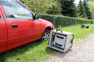Kierujący autobusem wymusił pierwszeństwo przejazdu kierującej suzuki. Kobieta, aby uniknąć czołowego zderzenia pojazdów zjechała na pobocze i uderzyła w stojący tam fotoradar. Urządzenie rozpadło się na dwie części. Kierowca autobusu za spowodowanie kolizji został ukarany mandatem.