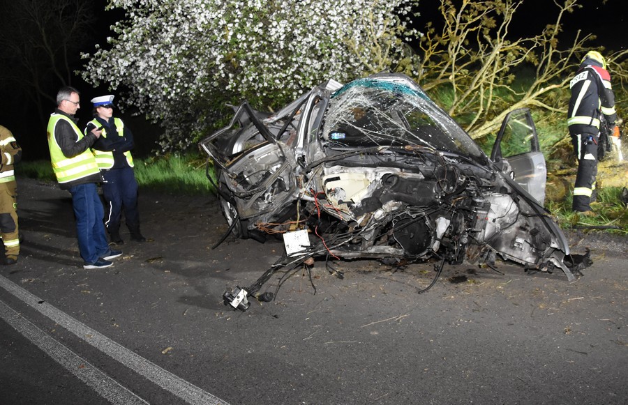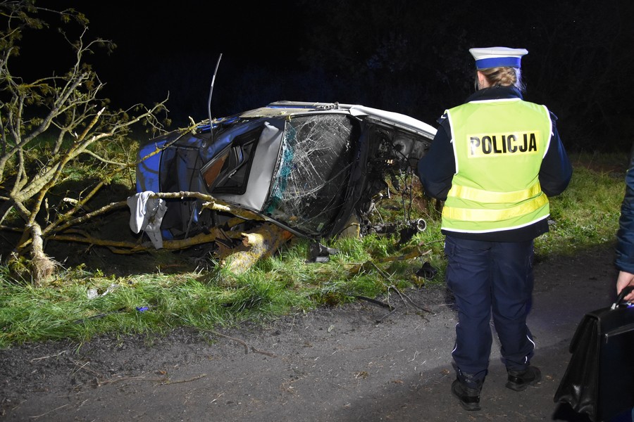 Dzisiejszej nocy policjanci z Komendy Powiatowej Policji w Starogardzie Gdańskim otrzymali zgłoszenie o wypadku drogowym, jaki wydarzył się na drodze wojewódzkiej nr 222 w pobliżu miejscowości Bobowo. Dyżurujący przy telefonie alarmowym funkcjonariusz natychmiast skierował na miejsce znajdujące się najbliżej patrole. Interweniujący w tej sprawie mundurowi zauważyli na poboczu drogi, całkowicie rozbite na drzewie bmw. Samochodem podróżowało 4 młodych mężczyzn, mieszkańców powiatu starogardzkiego. Niestety obrażenia jakich doznał 25-letni pasażer okazały się śmiertelne. Dwóch pozostałych pasażerów w wieku 19 i 23 lat przetransportowano do szpitala w celu zdiagnozowania obrażeń ciała. Mundurowi zatrzymali 20-letniego kierowcę BMW. Badanie alkomatem wykazało, że był trzeźwy. Mężczyzna spędził noc w policyjnej celi. Funkcjonariusze zatrzymali kierującemu prawo jazdy oraz dowód rejestracyjny od rozbitego auta. W celu ustalenia, czy nie znajdował się pod wpływem środków odurzających pobrana została krew.