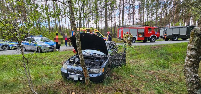 Wczoraj, około godz. 15:00 policjanci z Człuchowa otrzymali zgłoszenie o wypadku drogowym do którego doszło na trasie Czarne – Gwda Mała, droga wojewódzka nr 201. W powiadomieniu była informacja dotycząca zdarzenia z udziałem samochodu osobowego, które uderzyło w drzewo. Niezwłocznie na miejsce zostały wezwane wszystkie służby. Po przybyciu na miejsce zastano kierującego volvo, który okazał się 54-letni mieszkańcem powiatu szczecineckiego. Ze wstępnych ustaleń policjantów pracujących na miejscu zdarzenia ustalono, że kierujący volvo podróżował wraz z 52-letnią pasażerką. Jadąc od strony Szczecinka do miejscowości Czarne nie dostosował prędkości do warunków panujących na drodze, zjechał na przeciwległy pas ruchu, a następnie uderzył w przydrożne drzewo. Mężczyzna został przebadany na zawartość alkoholu w wydychanym powietrzu. Okazało się, że znajduje się w stanie nietrzeźwości. Badanie alkomatem wykazało ponad 2 promile w jego organizmie. Po sprawdzeniu mężczyzny w policyjnych systemach ustalono, że posiada on aktywny zakaz prowadzenia wszelkich pojazdów mechanicznych wydany przez Sąd Rejonowy w Tucholi na 48 miesięcy. Mężczyzna w związku z podejrzeniem urazów ciała został zabrany do szpitala. Pasażerka nie odniosła żadnych obrażeń.