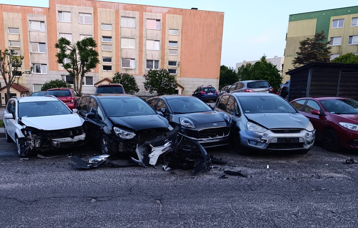 Wczoraj policjanci z ruchu drogowego pracowali na miejscu zdarzenia, do którego doszło przy ulicy Ledóchowskiego. Ze wstępnych ustaleń wynika, że kierujący hondą podczas wyprzedzania stracił panowanie nad samochodem i najechał na 5 prawidłowo zaparkowanych pojazdów dokonując ich uszkodzeń, po czym oddalił się z miejsca zdarzenia.