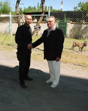 Dzisiejsza wizyta pułkownika Franciszka Szydełko związana jest z obchodami 65 rocznicy powstania słupskiej Szkoły Policji. Uznany treser spotkał się z policjantem Komendy Miejskiej Policji w Słupsku - asp. Pawłem Bajtkiem, który tak jak on 60 lat temu, dzisiaj zajmuje się tresura psów służbowych. Asp. Paweł Bajtek wspólnie z kolegą i instruktorem ośrodka szkolenia psów K2 - Januszem Strąkiem zaprezentowali praktyczny pokaz interwencji policyjnej z udziałem niezwykle dynamicznego psa służbowego rasy Malinois. Pies ten od 1,5 roku służy w KMP w Słupsku. Jest pierwszym tej rasy psem w całym garnizonie pomorskim.