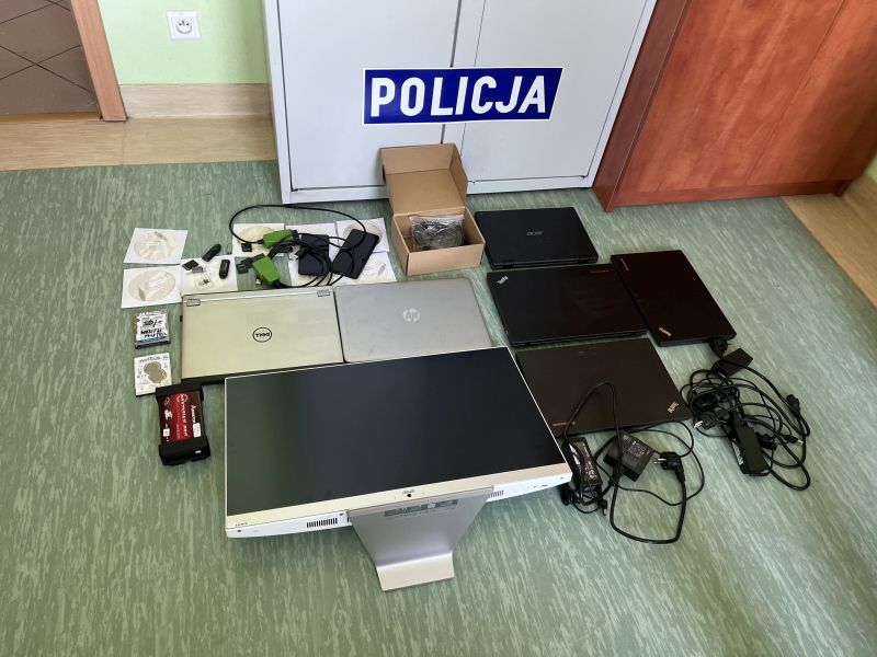 Funkcjonariusze Wydziału do Walki z Przestępczością Gospodarczą Komendy Powiatowej Policji w Człuchowie dotarli do mieszkańca Człuchowa, który oferował do sprzedaży laptopy z wgranym nielegalnym oprogramowaniem diagnostycznym, przygotowywanym pod danego indywidualnego klienta. Jak się okazało 52 latek działał na szkodę kilku firm, do których należały oprogramowania pozyskane przez niego w przestępczy sposób. Przyjęto zawiadomienie od przedstawiciela pokrzywdzonych firm, do którego należy ochrona praw autorskich i znaków towarowych. Uprawniony przedstawiciel wycenił wartość poniesionych strat na kwotę ponad 180 tysięcy złotych. Policjanci w miejscu zamieszkania mężczyzny zabezpieczyli różnego rodzaju nośniki danych, programy diagnostyczne, laptopy, komputer stacjonarny oraz inne urządzenia, które wykorzystywał do popełnienia przestępstwa. Zebrany na miejscu materiał dowodowy pozwolił na przedstawienie 52-latkowi jeszcze w tym samym dniu zarzutu kradzieży programów komputerowych. Mężczyźnie grozi mu 5 lat pozbawienia wolności.