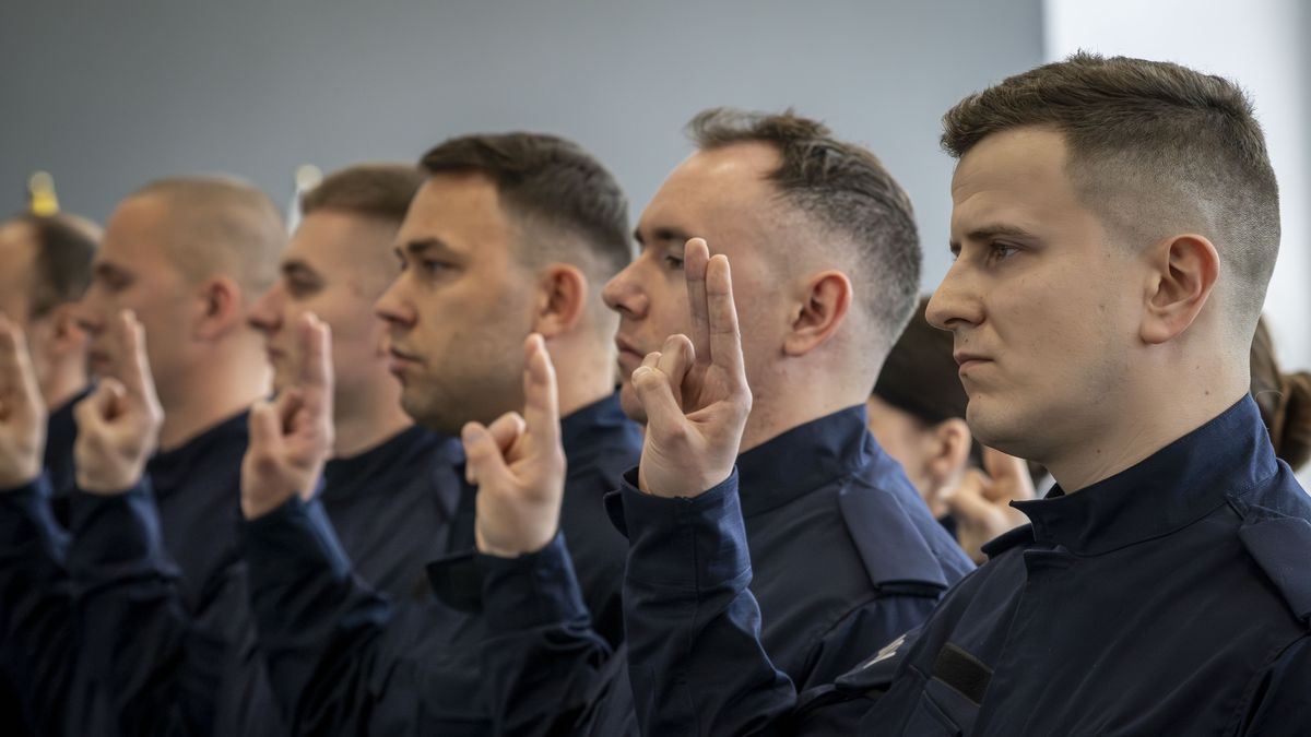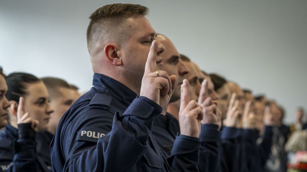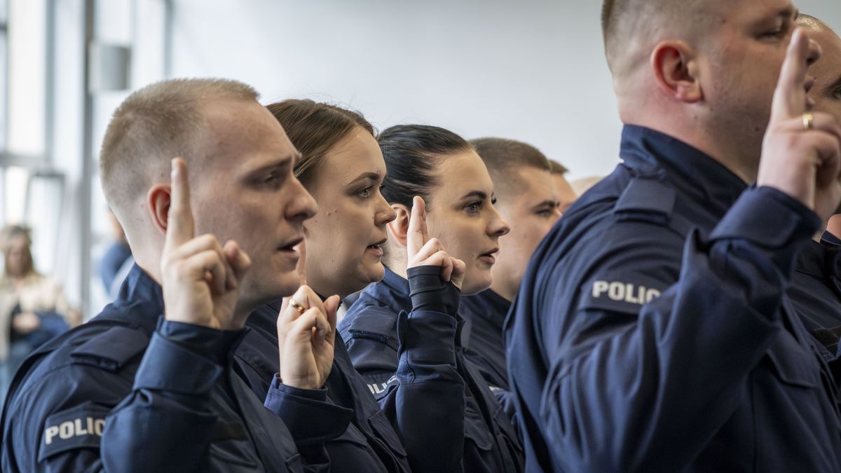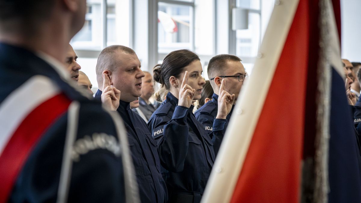 „Ja, obywatel Rzeczypospolitej Polskiej, świadom podejmowanych obowiązków policjanta, ślubuję: służyć wiernie Narodowi, chronić ustanowiony Konstytucją Rzeczypospolitej Polskiej porządek prawny, strzec bezpieczeństwa Państwa i jego obywateli, nawet z narażeniem życia. Wykonując powierzone mi zadania, ślubuję pilnie przestrzegać prawa, dochować wierności konstytucyjnym organom Rzeczypospolitej Polskiej, przestrzegać dyscypliny służbowej oraz wykonywać rozkazy i polecenia przełożonych. Ślubuję strzec tajemnic związanych ze służbą, honoru, godności i dobrego imienia służby oraz przestrzegać zasad etyki zawodowej" – przysięgało 26 nowo przyjętych funkcjonariuszy.