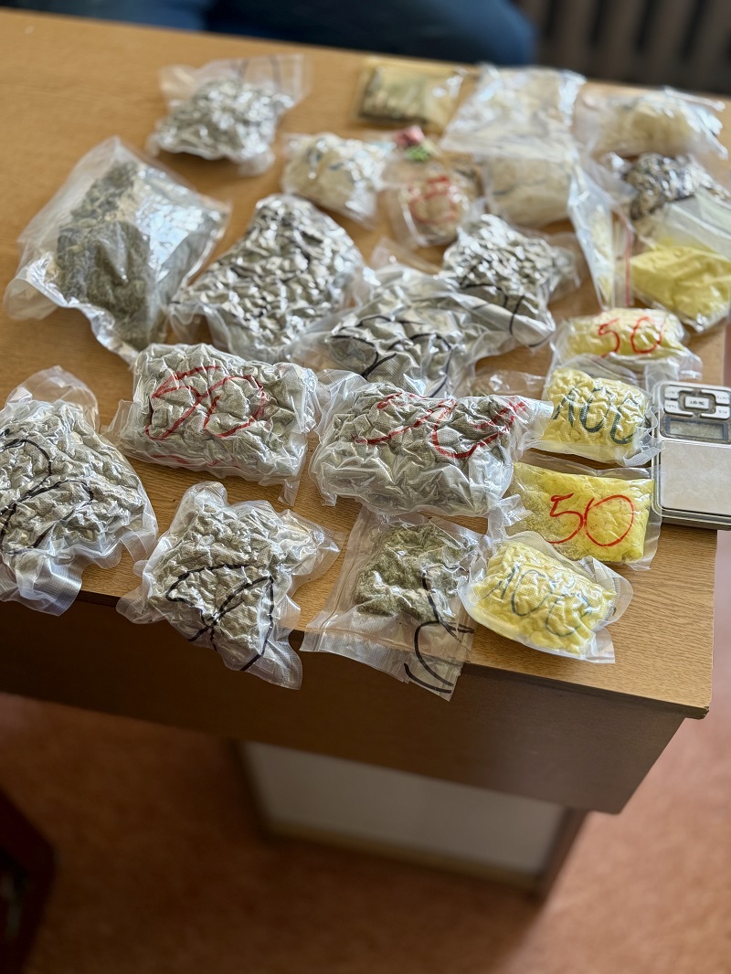 Policjanci z Wydziału Kryminalnego Komendy Powiatowej Policji w Tczewie, którzy każdego dnia zajmują się zwalczaniem przestępczości narkotykowej, odnieśli kolejny sukces w walce z tym niebezpiecznym procederem. Podczas pracy operacyjnej dotarli do 51-letniego mieszkańca powiatu tczewskiego, który w swoim domu przechowywał różnego rodzaju narkotyki. Mundurowi zabezpieczyli marihuanę, amfetaminę, klefedron i tabletki MDMA – łącznie blisko półtora kilograma, co daje około 7 000 porcji handlowych. Środki odurzające były ukryte w różnych częściach posesji – zarówno w domu, jak i w ogródku. Podczas przeszukania funkcjonariusze sprawdzili dokładnie każdy zakamarek. W działaniach wsparcia udzielił im przewodnik psa służbowego Nel z Komendy Powiatowej Policji w Starogardzie Gdańskim, co pozwoliło mieć pewność, że cała nielegalna substancja została zabezpieczona. 51-latek został zatrzymany i trafił do policyjnej celi. Następnego dnia kryminalni doprowadzili go do prokuratury, gdzie usłyszał zarzut posiadania znacznej ilości narkotyków. Sąd, na wniosek prokuratora, zdecydował o jego tymczasowym aresztowaniu na okres dwóch miesięcy. Za posiadanie znacznej ilości narkotyków grozi do 10 lat więzienia.