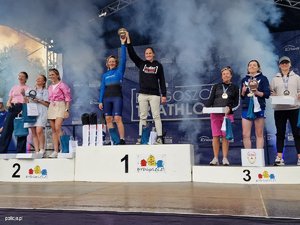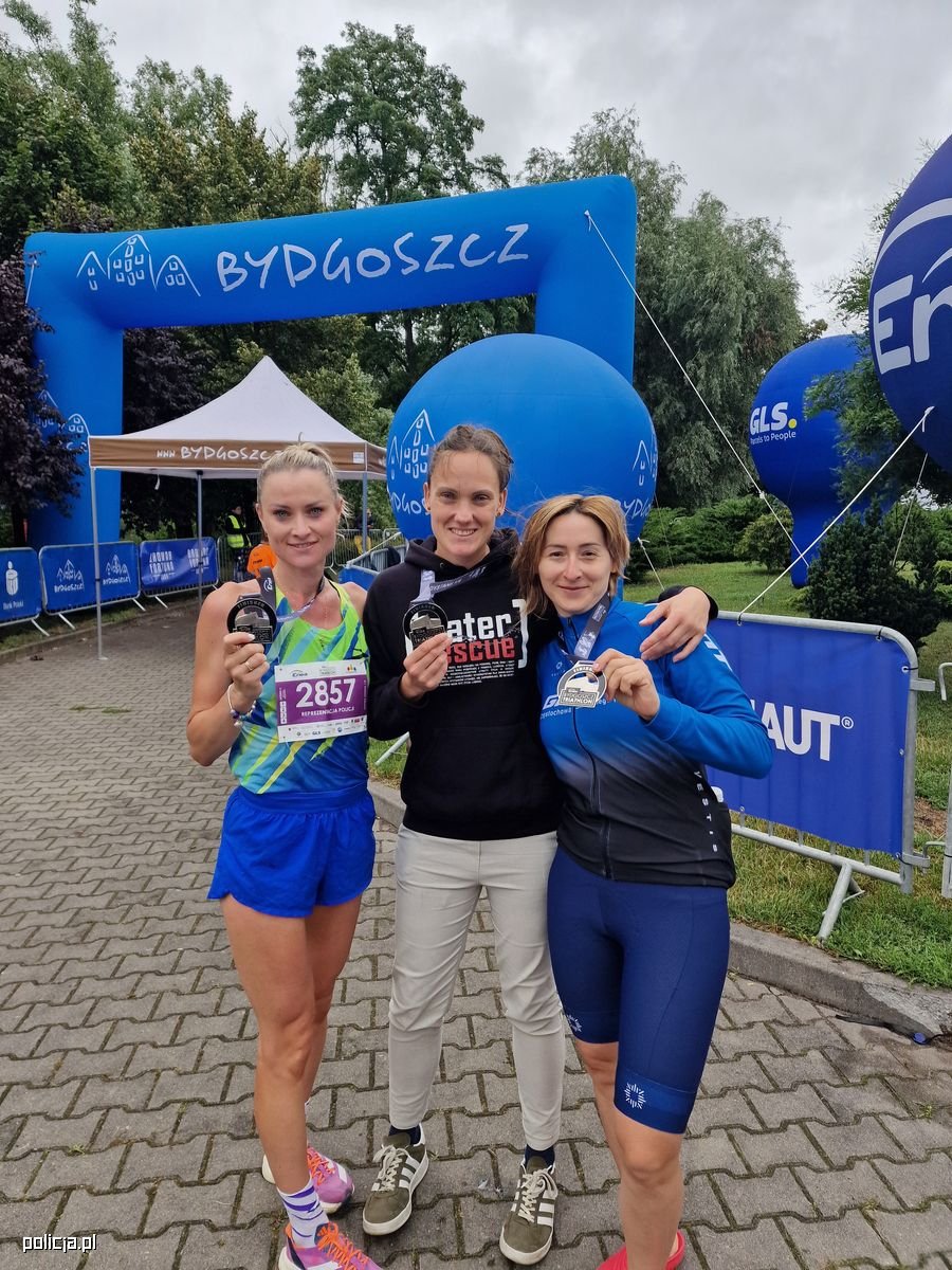 W odbywających się w Bydgoszczy zawodach triathlonowych sierż. Monika Pieniążkiewicz startująca w składzie policyjnej sztafety kobiecej zajęła pierwsze miejsce w kategorii kobiet.