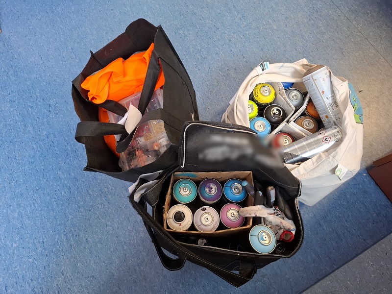 W poniedziałek wieczorem dyżurny ruchu PKP w Lęborku powiadomił policjantów o wandalach, którzy nanoszą farbą w sprayu malunki na dwóch wagonach pociągu SKM. Gdy mundurowi dojeżdżali w rejon torowiska, zauważyli uciekających trzech mężczyzn i natychmiast ruszyli za nimi. Uciekinierzy rozdzielili się, porzucając torby farbami, ale po krótkim pościgu policjanci zatrzymali jednego z nich. Okazało się, że to 34-latek z Kielc, który umówił się z dwoma innymi sprawcami na dworcu na wspólne nielegalne „malowanie” wagonów. Ubranie mężczyzny było zabrudzone farbą w takim samym kolorze jak „malunki” na wagonach. 34-latek twierdził, że jest świadomy czekających go konsekwencji, ale nielegalne tworzenie graffiti było spowodowane potrzebą poszukiwania inspiracji i doznań. Funkcjonariusze zabezpieczyli znalezione przy nim dwa aparaty fotograficzne, za pomocą których uwieczniał swoje „dzieła” oraz porzucone przez sprawców torby wypełnione m.in. ponad 30 puszkami farby w sprayu, rękawicami ochronnymi i organizerem z dyszami rozpylającymi. Wkrótce 34-latek usłyszy zarzuty bezprawnego umieszczania malunków na wagonach. Grozi mu kara aresztu lub grzywny. Zgodnie z treścią art. 63a§2 kodeksu wykroczeń „w razie popełnienia wykroczenia można orzec przepadek przedmiotów służących lub przeznaczonych do popełnienia wykroczenia, choćby nie stanowiły własności sprawcy, oraz nawiązkę w wysokości do 1500 złotych lub obowiązek przywrócenia do stanu poprzedniego”. Policjanci prowadzą czynności zmierzające do ustalenia i zatrzymania pozostałych sprawców.