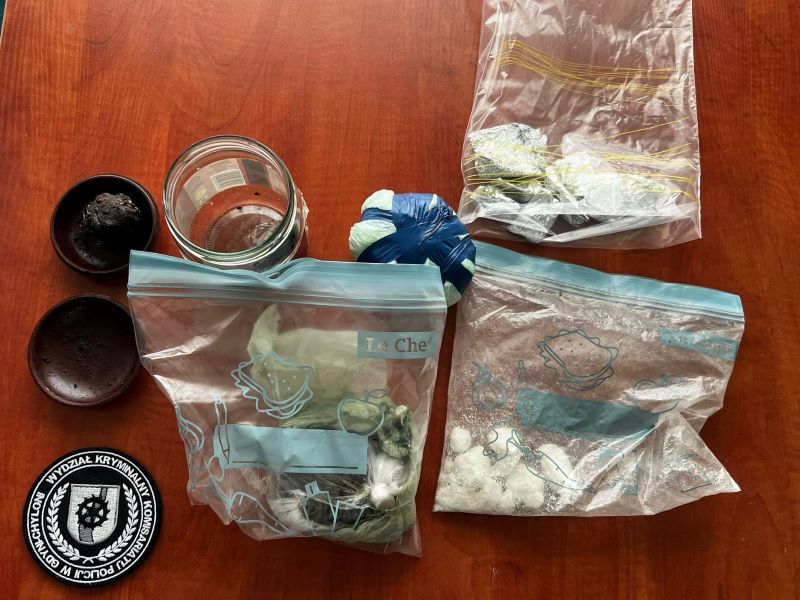 Kryminalni z Chyloni na co dzień prowadzą intensywne działania na rozległym terenie obejmującym nie tylko dzielnice Gdyni, ale również sąsiednie miejscowości. Ich skuteczność wynika z zaangażowania, doświadczenia oraz systematycznej pracy ukierunkowanej na zwalczanie przestępczości narkotykowej. Kolejny sukces funkcjonariuszy miał miejsce 17 lipca. Policjanci ustalili, że 41-letni mieszkaniec Rumi może mieć w swoim mieszkaniu środki odurzające, którymi handluje na terenie Gdyni, ponadto prawdopodobnie uprawia plantację marihuany. Po przyjeździe pod ustalony adres kryminalni zauważyli, że z budynku wychodzi mężczyzna, który jest w ich zainteresowaniu. Policjanci przystąpili do legitymowania 41-latka, który w trakcie interwencji przyznał, że czasami pali marihuanę i może mieć jej śladowe ilości w mieszkaniu. W związku z powyższym funkcjonariusze sprawdzili jego „adres” i w trakcie przeszukania znaleźli i zabezpieczyli łącznie przeszło 478 gramów środków odurzających i substancji psychotropowych – w tym ponad 224 gramy amfetaminy (mogące posłużyć do przygotowania 464 porcji) oraz ponad 253 gramy haszyszu (odpowiednik nawet 1498 porcji). Dodatkowo kryminalni znaleźli małą, nielegalną plantację konopi indyjskich, składającą się z czterech roślin przypominających marihuanę. W pomieszczeniach mieszkalnych policjanci zabezpieczyli również inne akcesoria i opakowania świadczące o przygotowaniu do dalszego obrotu środkami odurzającymi.
