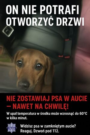 Wysokie temperatury w połączeniu z brakiem rozsądku i wyobraźni są bardzo niebezpieczne. Policjanci apelują, aby nie zostawiać w samochodzie, nawet na chwilę, dzieci i zwierząt. Przy upałach wewnątrz zamkniętego samochodu nie ma cyrkulacji powietrza, które umożliwiałoby swobodne oddychanie. Lekko uchylone szyby, czy miska z wodą pozostawiona dla psa sprawy nie załatwią. Temperatura może wzrosnąć o dodatkowe kilkadziesiąt stopni Celsjusza, a przez brak rozwagi może dojść do tragedii. Widząc pozostawione w pojeździe dziecko, bądź zwierzę reaguj i natychmiast skontaktuj się z numerem alarmowym 112. Rozejrzyj się, właściciel samochodu może być w pobliżu. Podczas rozmowy telefonicznej uważnie słuchaj oraz wykonuj polecenia dyspozytora lub policjanta. Być może usłyszysz polecenie, aby dla ratowania życia zbić w samochodzie szybę. Jeżeli to możliwe, zostań na miejscu do czasu przyjazdu służb.
