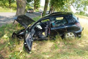 W sobotę o godz. 11.40 w Kowalach 27-letnia mieszkanka Rumi kierująca fiatem bravo straciła panowanie na pojazdem, zjechała na pobocze i uderzyła w drzewo. Prawdopodobną przyczyną wypadku było urwanie się przedniego koła samochodu.