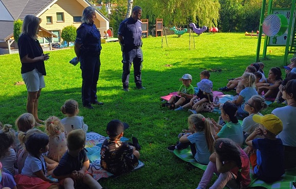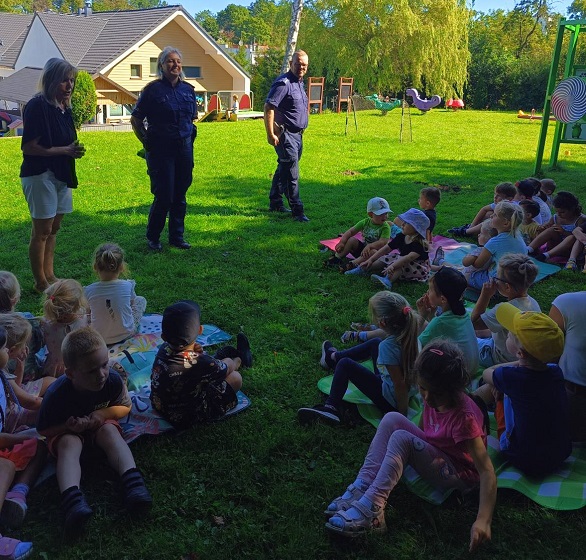 Policjanci z Lęborka i Łeby spotkali się z dziećmi i rozmawiali o bezpieczeństwie podczas wypoczynku nad wodą i o bezpiecznym zachowaniu na drodze.