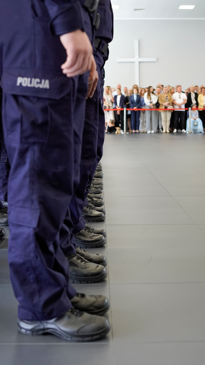 „Ja, obywatel Rzeczypospolitej Polskiej, świadom podejmowanych obowiązków policjanta, ślubuję: służyć wiernie Narodowi, chronić ustanowiony Konstytucją Rzeczypospolitej Polskiej porządek prawny, strzec bezpieczeństwa Państwa i jego obywateli, nawet z narażeniem życia. Wykonując powierzone mi zadania, ślubuję pilnie przestrzegać prawa, dochować wierności konstytucyjnym organom Rzeczypospolitej Polskiej, przestrzegać dyscypliny służbowej oraz wykonywać rozkazy i polecenia przełożonych. Ślubuję strzec tajemnic związanych ze służbą, honoru, godności i dobrego imienia służby oraz przestrzegać zasad etyki zawodowej" - przysięgało 20 nowo przyjętych funkcjonariuszy.