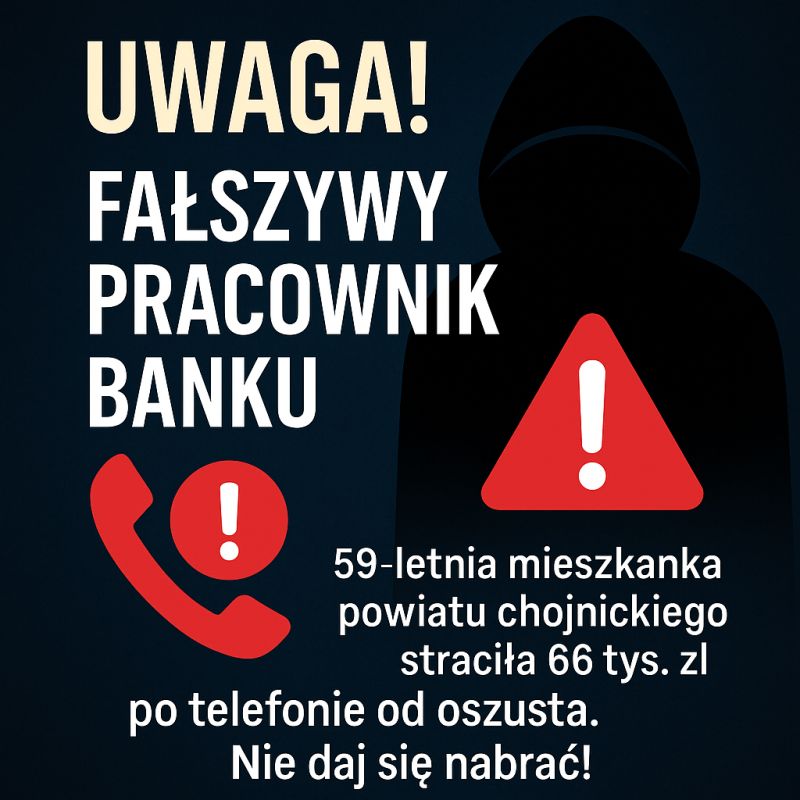 Podszył się pod pracownika banku - kobieta straciła 66 tysięcy złotych