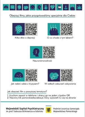 Wojewódzki Szpital Psychiatryczny im. prof. Tadeusza Bilikiewicza w Gdańsku opracował w tym zakresie materiały edukacyjne. W krótkich filmach zostały poruszone kluczowe kwestie, tj.: jak rozpoznawać objawy problemów psychicznych u dzieci i młodzieży, jak skutecznie wspierać młodych ludzi w trudnych chwilach, jak budować przestrzeń dla rozmowy i akceptacji, gdzie szukać pomocy specjalistycznej, gdy jest potrzebna. Filmy dostępne są pod niżej wymienionymi linkami: