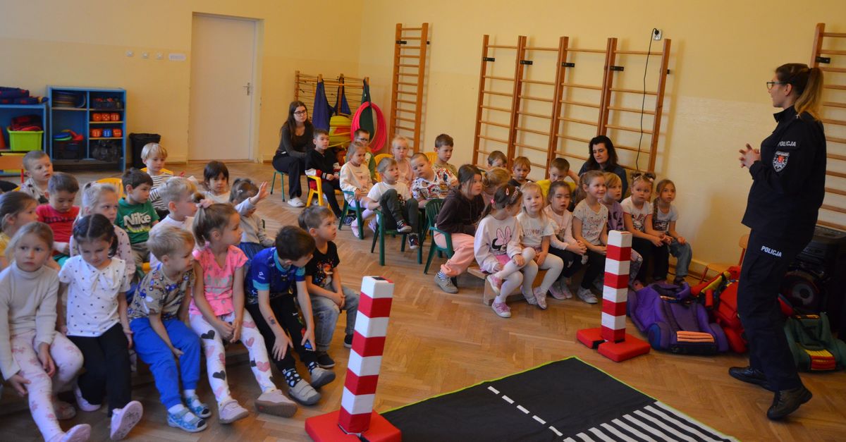 W ramach akcji „Świeć przykładem – noś odblaski” policjanci spotykają się z przedszkolakami oraz najmłodszymi uczniami szkół podstawowych i przypominają o zasadach bezpiecznego poruszania się po drodze oraz o tym, jak ważną rolę odgrywają elementy odblaskowe. Podczas jednego z takich spotkań policjant i przewodnik pasa służbowego mówili maluchom o zasadach bezpiecznego zachowania podczas kontaktu z psem.
