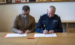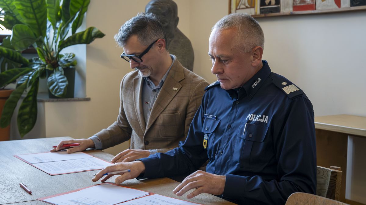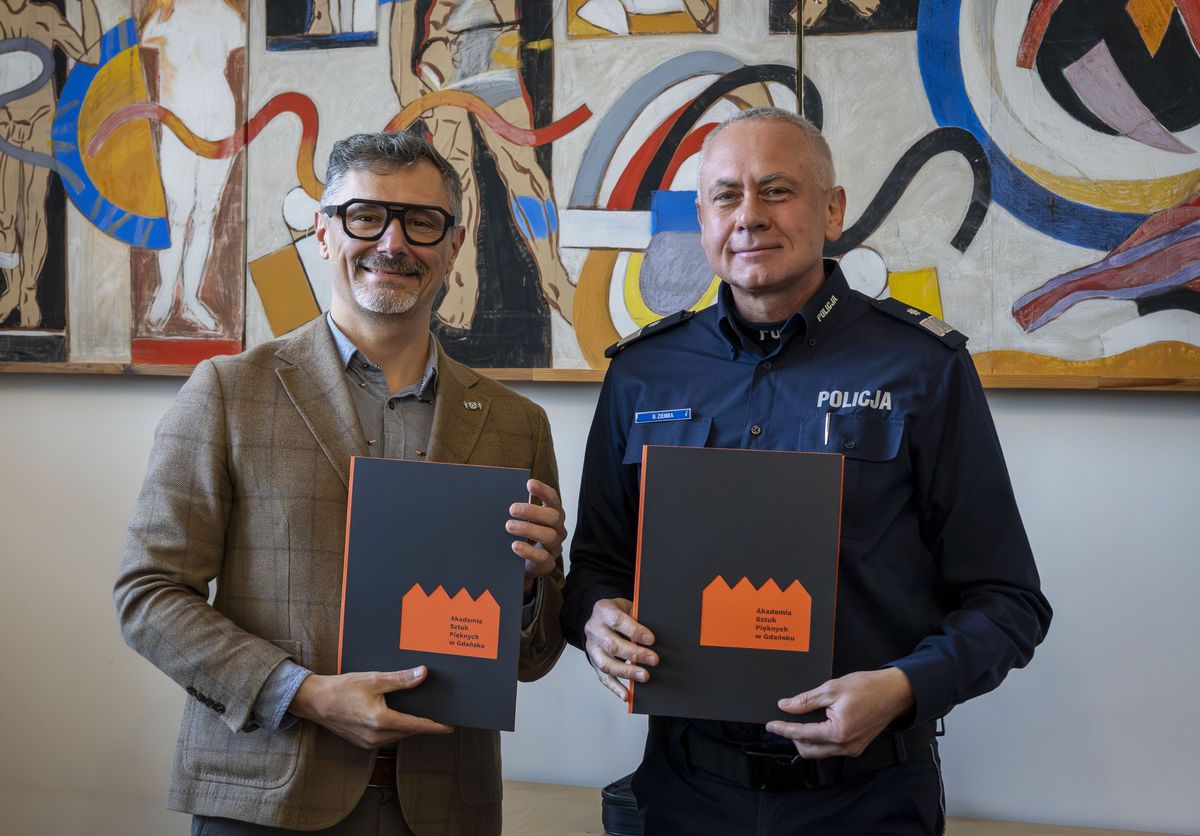 Pomorska Policja i Akademia Sztuk Pięknych wspólnie dla poprawy bezpieczeństwa – porozumienie pomiędzy nadinsp. Bogusławem Ziembą i Rektorem ASP prof. dr hab. Adamem Świerżewskim.