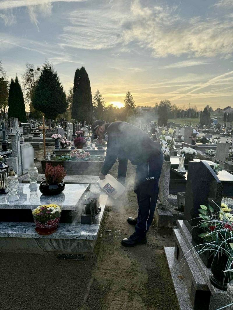 Trwający okres Święta Zmarłych to czas wzmożonej pracy policjantów. Funkcjonariusze z Komisariatu Policji w Pelplinie patrolują lokalne cmentarze, dbając o bezpieczeństwo odwiedzających. Reagują nie tylko na wykroczenia, ale również na niebezpieczne sytuacje, takie jak pożary czy kradzieże.