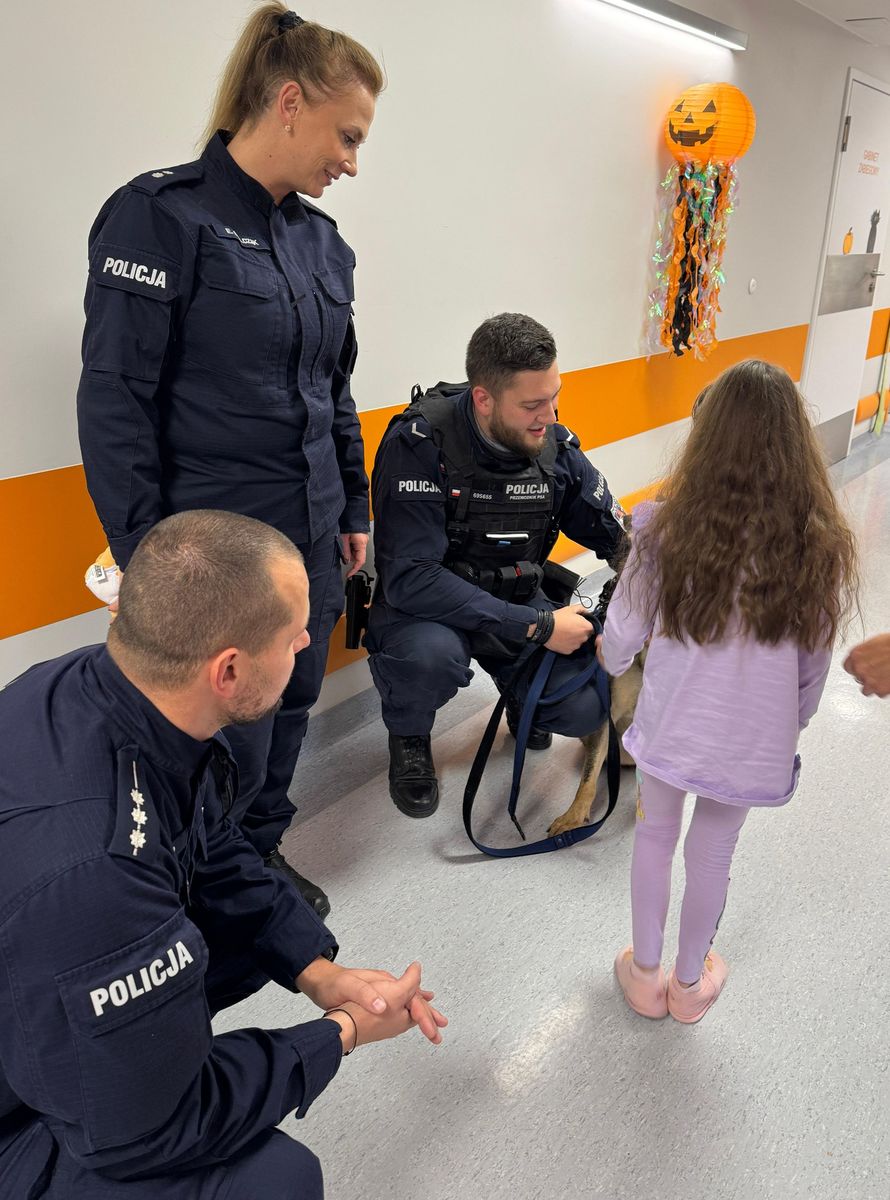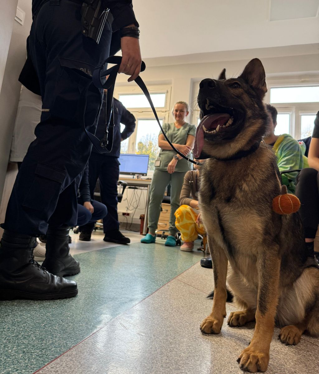 Gdańscy policjanci wspólnie z policyjnym psem Freją z okazji Dnia Dyni odwiedzili małych pacjentów Szpitala Dziecięcego Polanki. Swoją wizytą funkcjonariusze chcieli dzieciom umilić czas spędzany w szpitalu i spowodować, by chociaż przez chwilę zapomniały one o zmaganiach z chorobą, a na ich buziach pojawił się uśmiech. W tym zadaniu pomagał mundurowym Freja, którą mali pacjenci mogły przytulić i pogłaskać.