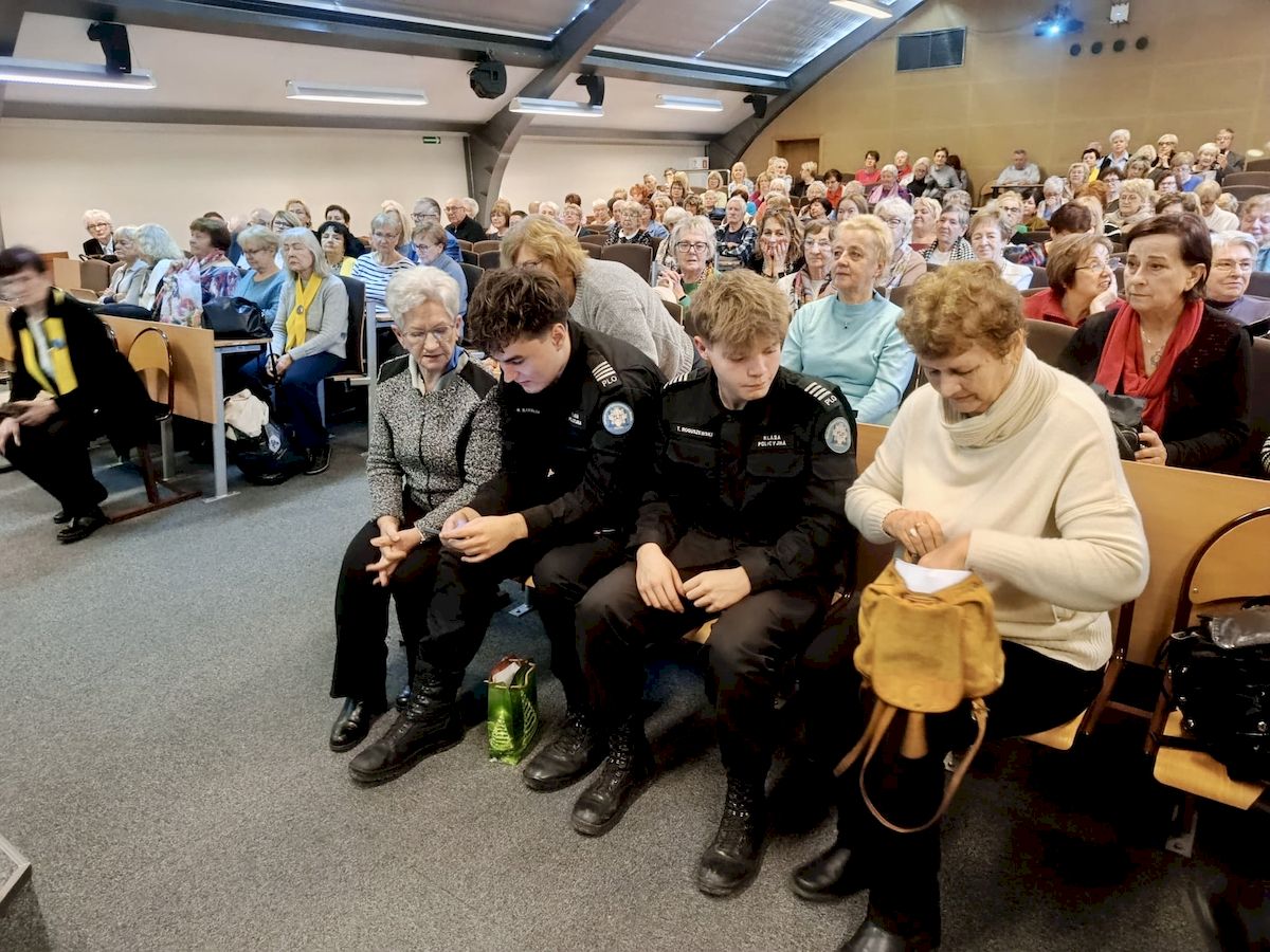 Celem spotkania było zwrócenie uwagi na rosnącą liczbę zagrożeń, którymi osoby starsze mogą spotkać się zarówno w świecie realnym, jak i cyfrowym. Policjanci omówili najczęściej stosowane przez oszustów metody – m.in. „na wnuczka”, „na policjanta”, fałszywe inwestycje czy manipulacje telefoniczne. Seniorzy dowiedzieli się, jak reagować na niepokojące sytuacje, gdzie szukać pomocy oraz jakie sygnały ostrzegawcze powinny wzbudzić ich czujność.